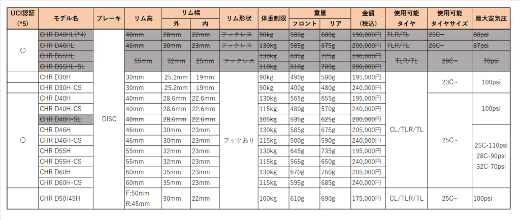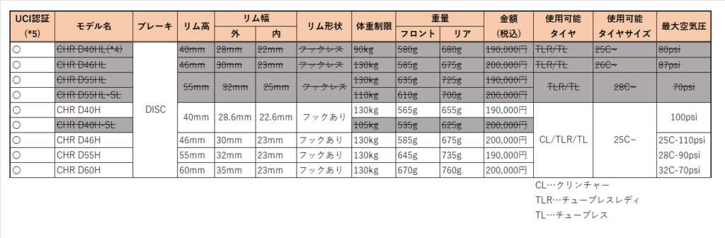 (*5)ホイールリストの〇が付いているモデルはUCI認証取得済み